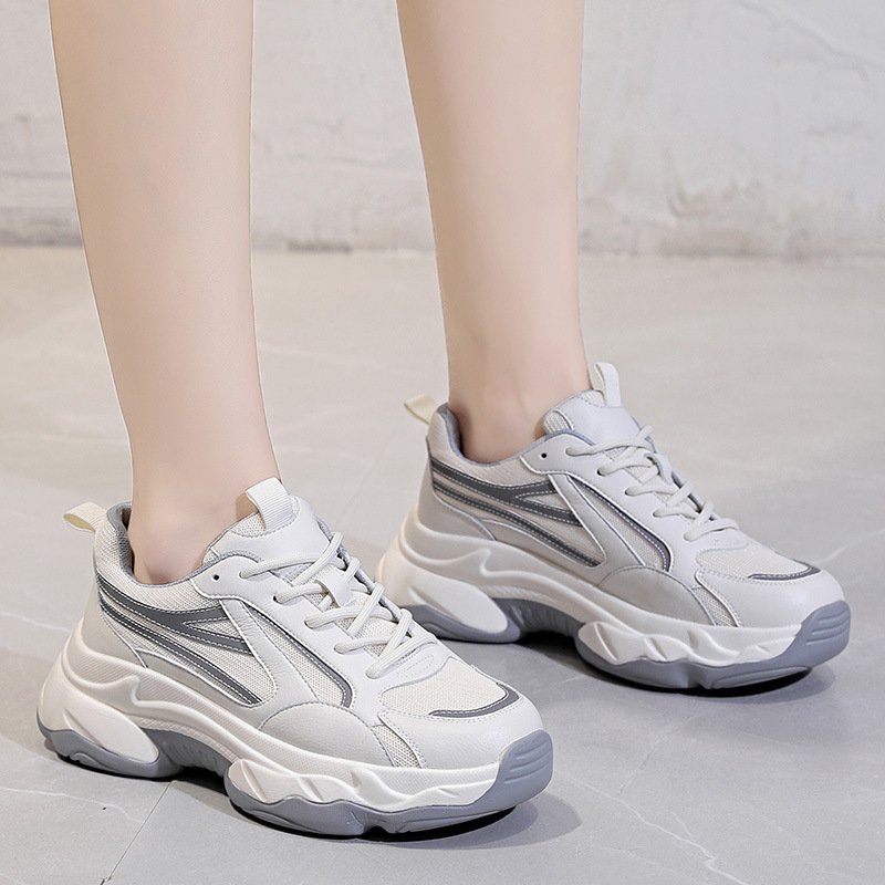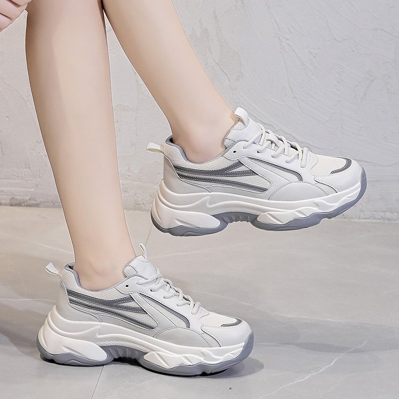 2021 spring new trend thick bottom mesh breathable soft bottom color matching sports casual women
