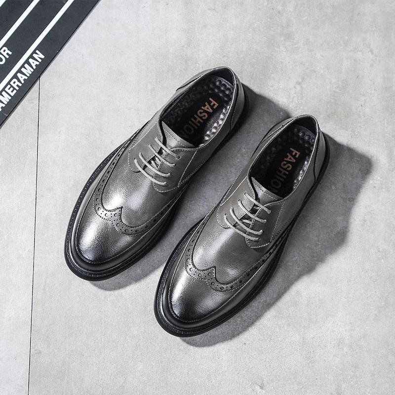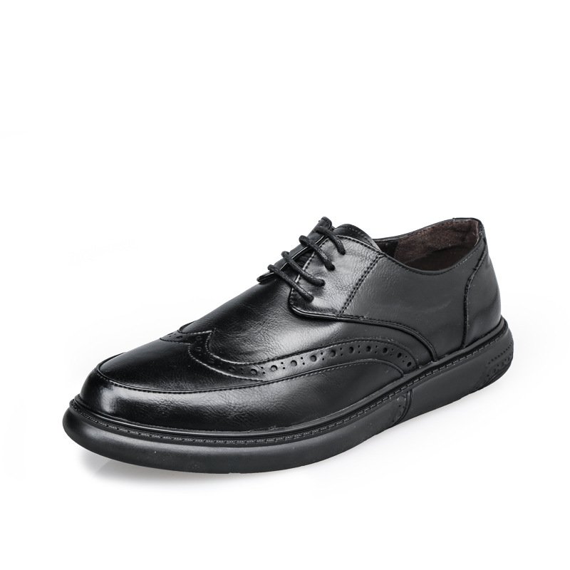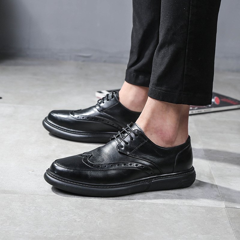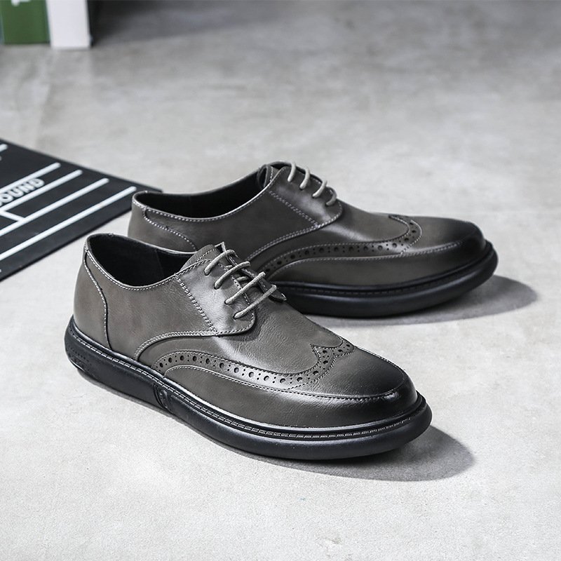 2021 new Bullock men's shoes British men's casual leather shoes men's round toe lace-up breathable trend single shoes