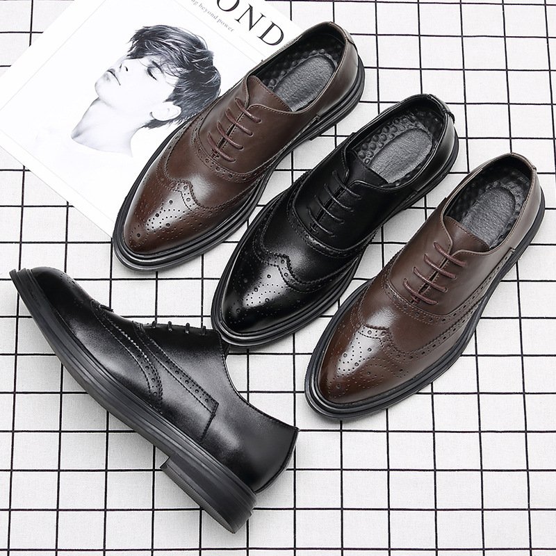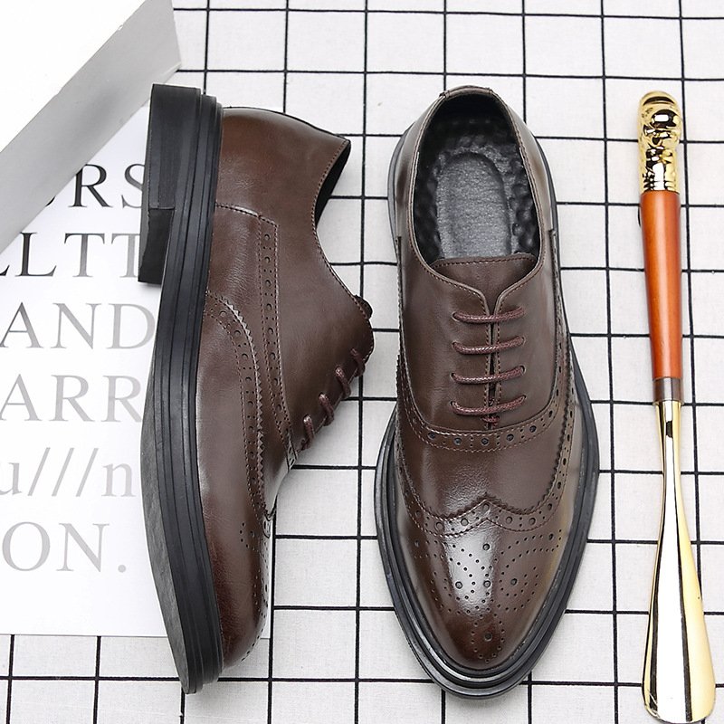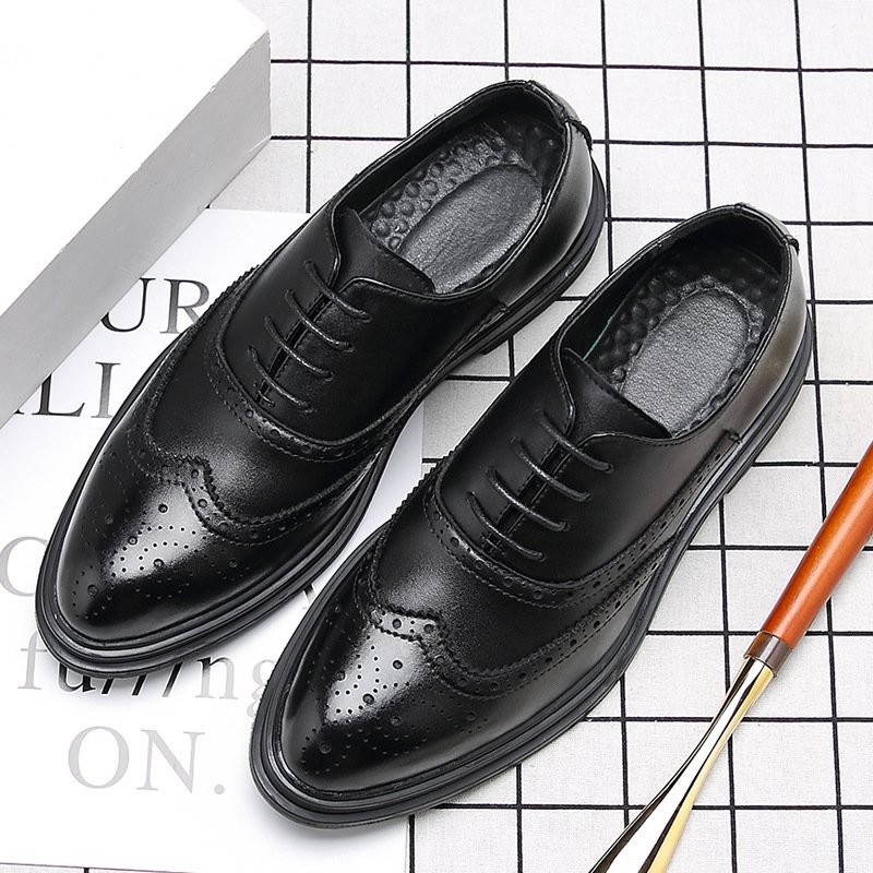 Autumn Bullock men's shoes, British trendy shoes, casual business dress shoes, men's pointed black small leather shoes